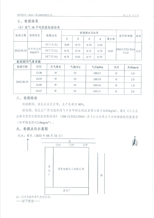 旭隆第三季度厂界非甲烷总烃小时均值监测报告
